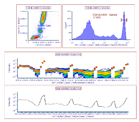 Windows? CyView?軟件可以完成儀器控制、數(shù)據(jù)分析的各種功能,這些功能包括數(shù)據(jù)的實時采集、實時或離線數(shù)據(jù)分析、實時或離線的熒光補償?shù)裙δ?。該軟件可自由組合不同的參數(shù)設(shè)置界面和數(shù)據(jù)處理界面,便于不同應用程序之間完成切換。該軟件可自由組合不同的參數(shù)設(shè)置界面和數(shù)據(jù)處理界面,便于不同應用程序之間完成切換。CyView?被用于免疫學、微生物學、細胞周期分析、DNA定量、倍性分析等所有應用領(lǐng)域。檢測數(shù)據(jù)可以流式細胞儀標準文件FCS格式存儲,以方便其他第三方分析軟件進行數(shù)據(jù)處理。CyView?一個獨特的功能是,在進行分析染料的同時,對熒光的光譜重疊進行數(shù)字形式的在線/離線顏色串擾補償。N色軟件補償算法允許在任何參數(shù)之間進行串擾校正,而不需要重新跑樣。
